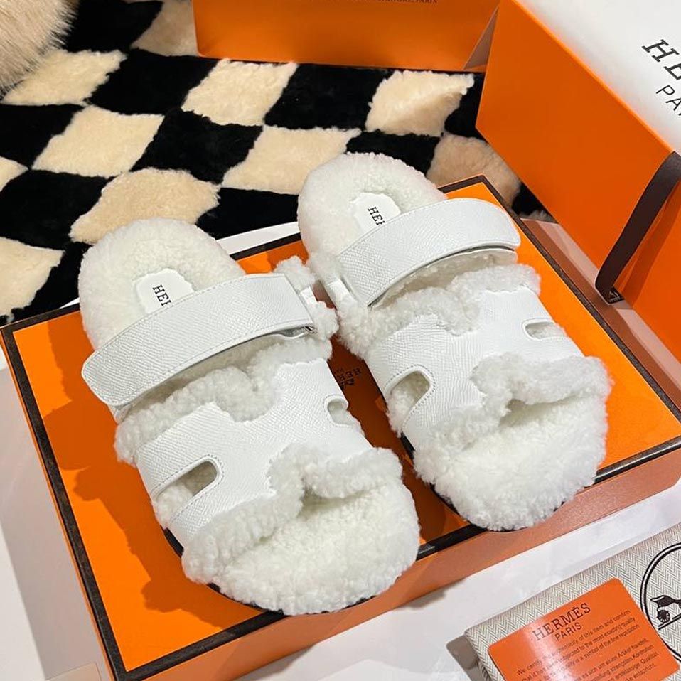 Женские брендовые Тапочки меховые HERMES Premium купить в интернет магазине