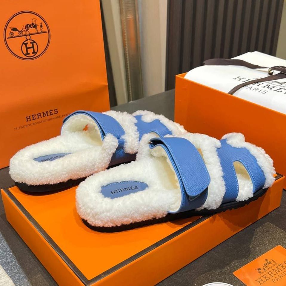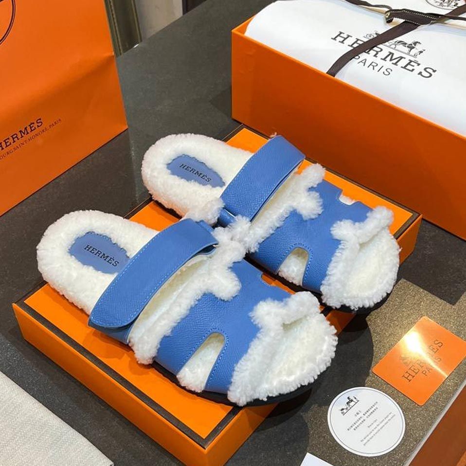 Женские брендовые Тапочки меховые HERMES Premium купить в интернет магазине