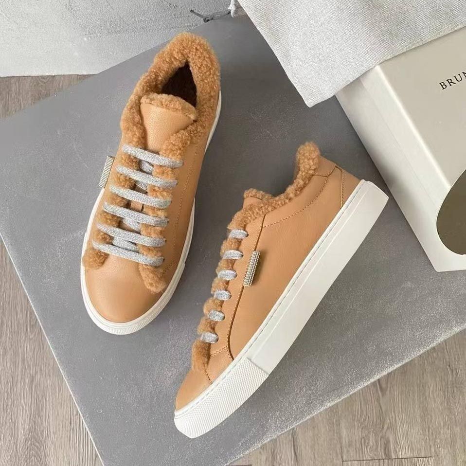Кеды женские зимние Brunello Cucinelli PREMIUM из натуральной замши и меха со скидкой в Москве с доставкой по всей России