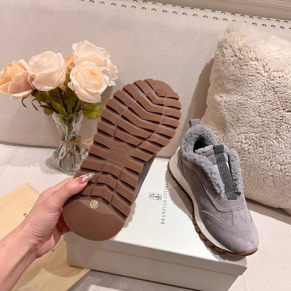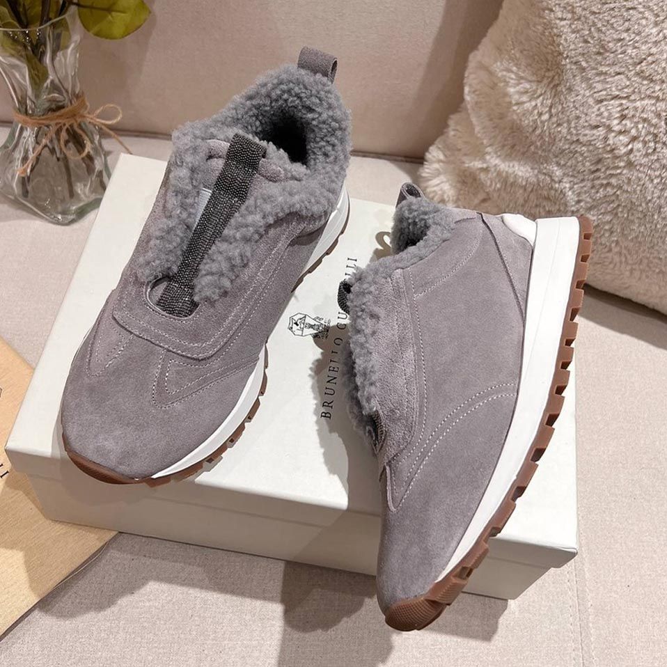 Кроссовки женские зимние Brunello Cucinelli PREMIUM из натуральной замши и меха со скидкой в Москве с доставкой по всей России