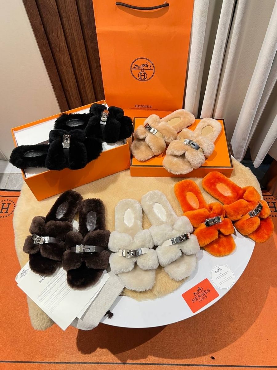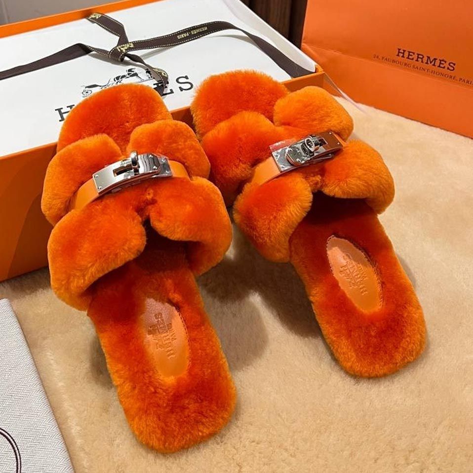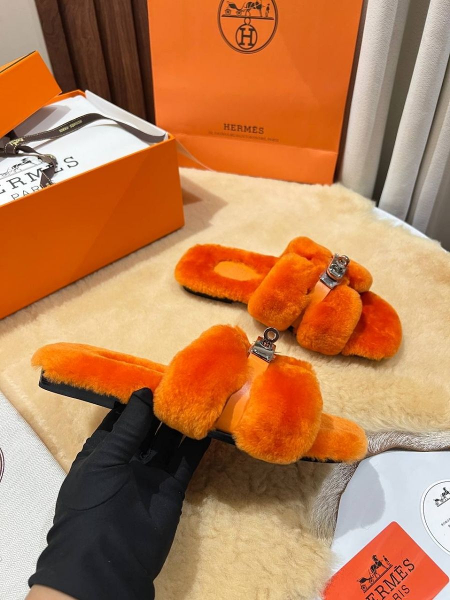 Женские меховые мюли шлепанцы HERMES Premium