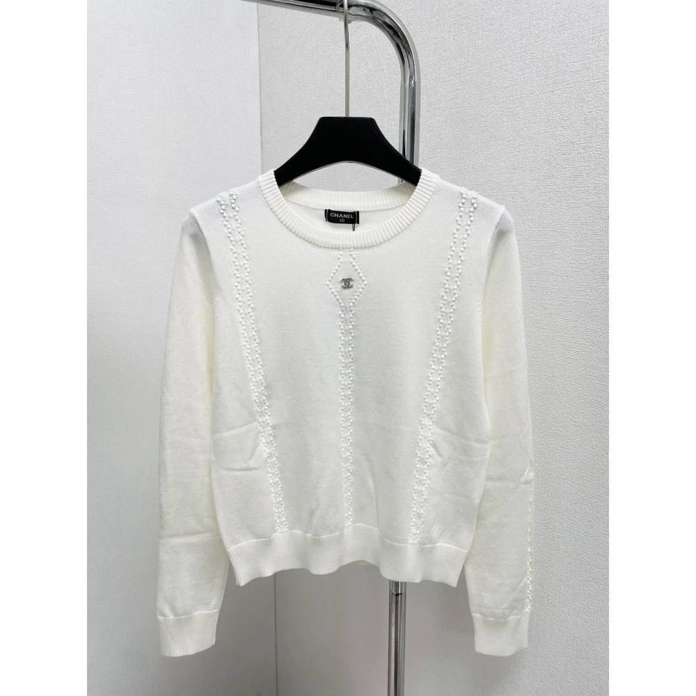 Женский белый шерстяной свитер CHANEL premium