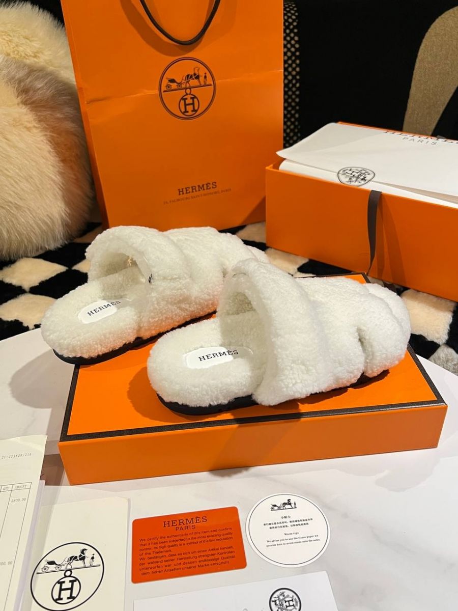 Женские брендовые Тапочки меховые HERMES Premium купить в интернет магазине